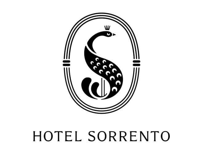 sorrento hotel的logo外形来源于一个美丽的孔雀,孔雀的形态简单优美,犹如欧美高贵的女性的象征,淡雅的蓝绿色体现出了
